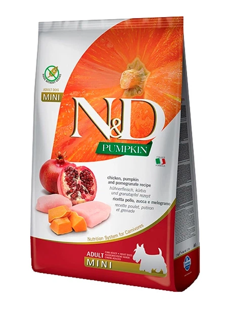 Беззерновий сухий корм Farmina N&D Pumpkin GF Dog Chicken&Pomegranate Adult Mini для собак дрібних порід з куркою, гарбузом