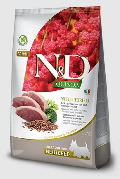 Сухий беззерновий корм N&D Quinoa, Neutered Adult Mini для собак міні порід з качкою, кіноа, броколі та спаржею 7 кг
