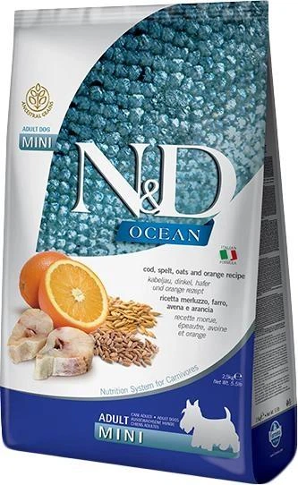 Низькозерновий сухий корм для собак дрібних порід Farmina N&D Low Grain Ocean ADULT MINI з тріскою та апельсином 2,5 кг