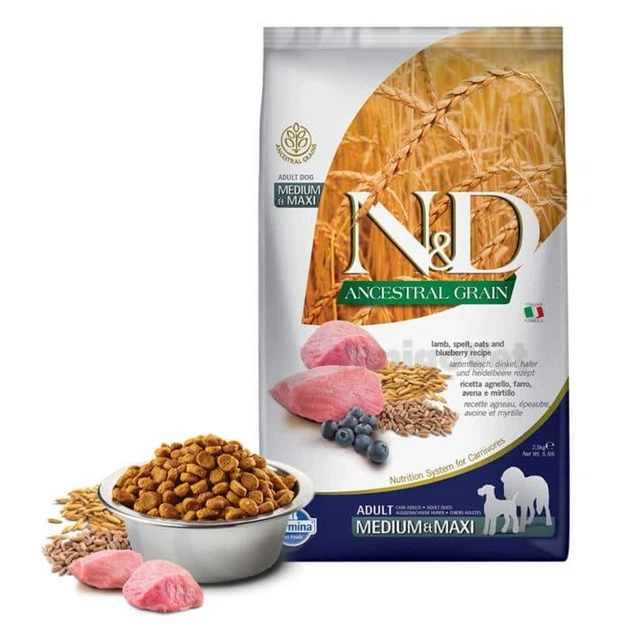 Сухий низькозерновий корм Farmina N&D Low Grain Lamb and Blueberry Adult Medium & Maxi для дорослих середніх та крупних порі