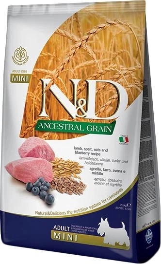 Низькозерновий сухий корм для собак дрібних порід Farmina N&D Low Grain LAMB & BLUEBERRY ADULT MINI з ягням та чорницею 2,5