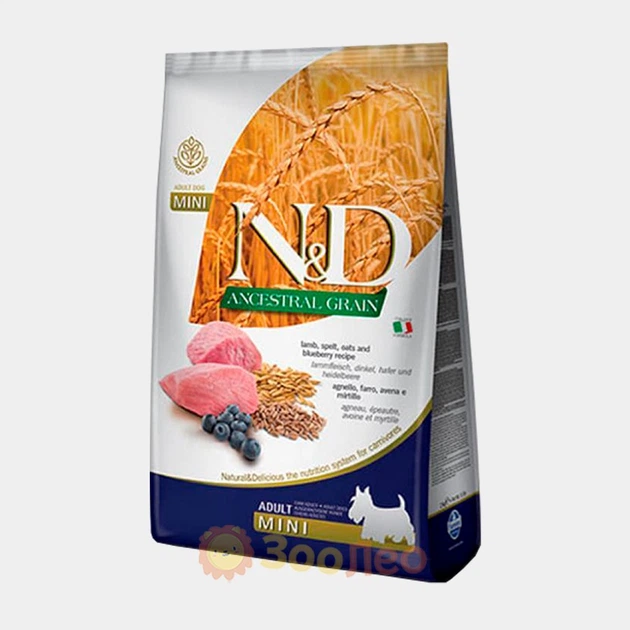 Низькозерновий сухий корм для собак дрібних порід Farmina N&D LOW GRAIN DOG LAMB & BLUEBERRY ADULT MINI (ягня / чорниця), 2.