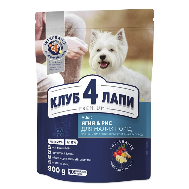 Сухий корм для собак малих порід Клуб 4 Лапи Adult Small Breeds Lamb & Rice 900 г