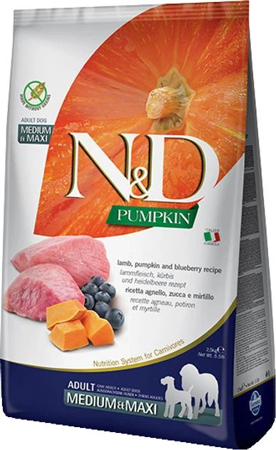 Беззерновий сухий корм Farmina N&D Grain Free PUMPKIN LAMB & BLUEBERRY ADULT MEDIUM & MAXI для дорослих собак середніх та ве