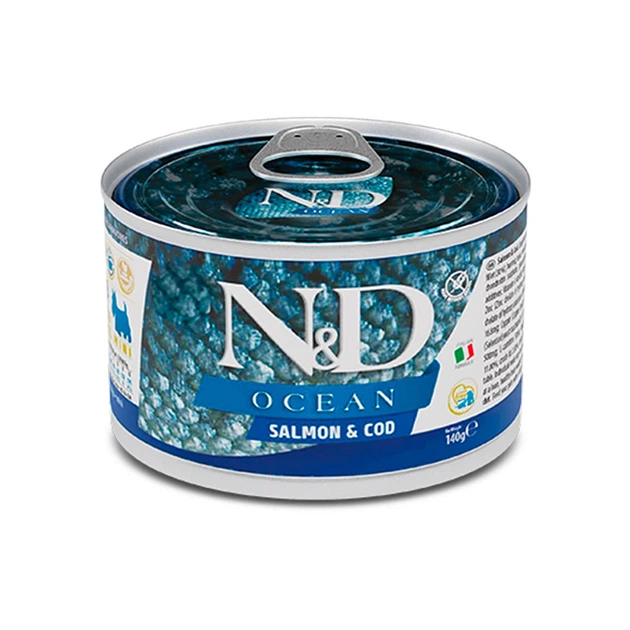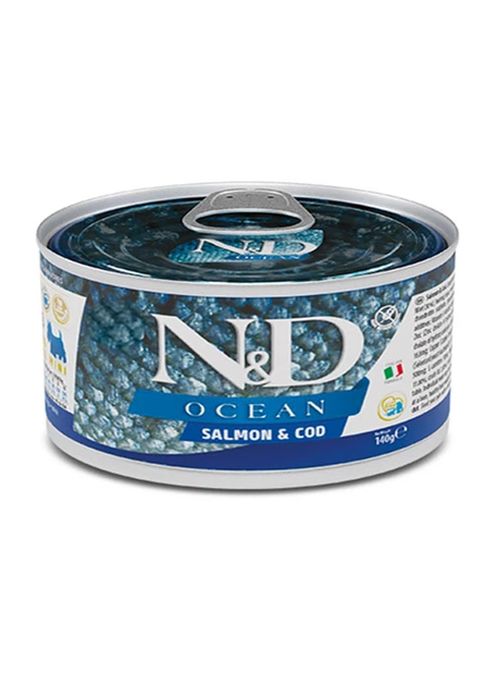 Беззерновий консервований корм Farmina N&D Grain Free Ocean Salmon & Cod Adult Mini для дорослих собак мілких порід з лососе