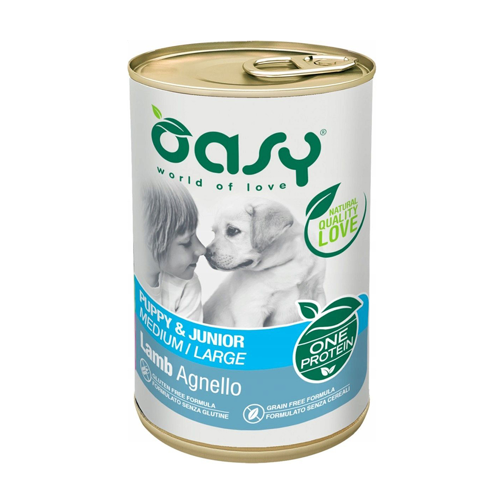 Вологий корм для цуценят середніх та великих порід собак Oasy One Animal Protein Puppy & Junior Medium/Large з ягням, 400 г