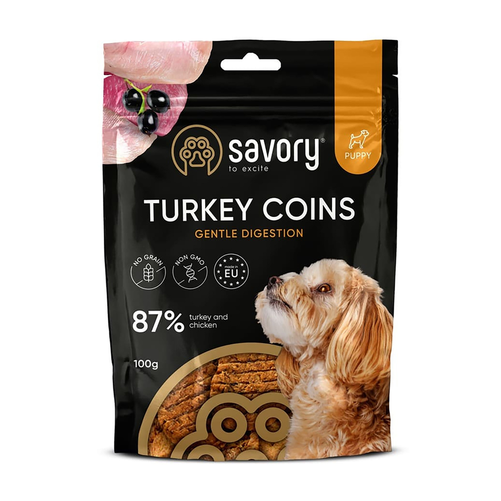 Ласощі для цуценят Savory Puppy Turkey Coins джерки, монетки з індичкою, 100 г