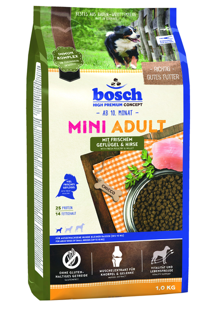Bosch HPC Mini Adult Сухий корм для дорослих собак з птицею та просом 1 кг