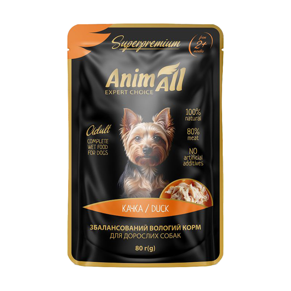 Вологий корм для дорослих собак AnimAll Качка, 80 г (пауч)