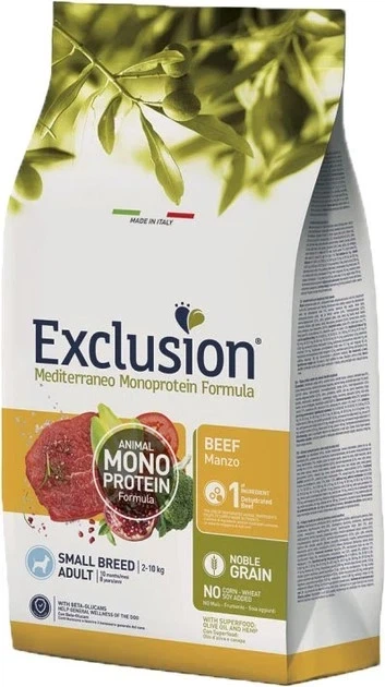 Повнораціонний сухий корм Exclusion Adult Beef Small Breed з яловичиною для дорослих собак дрібних порід 2 кг
