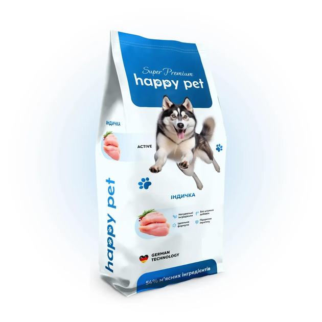 Сухий корм Happy Pet для дорослих активних собак середніх та великих порід з індичкою 10 кг