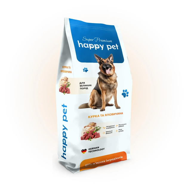 Сухий корм Happy Pet для дорослих собак великих порід з куркою та яловичиною 1 кг