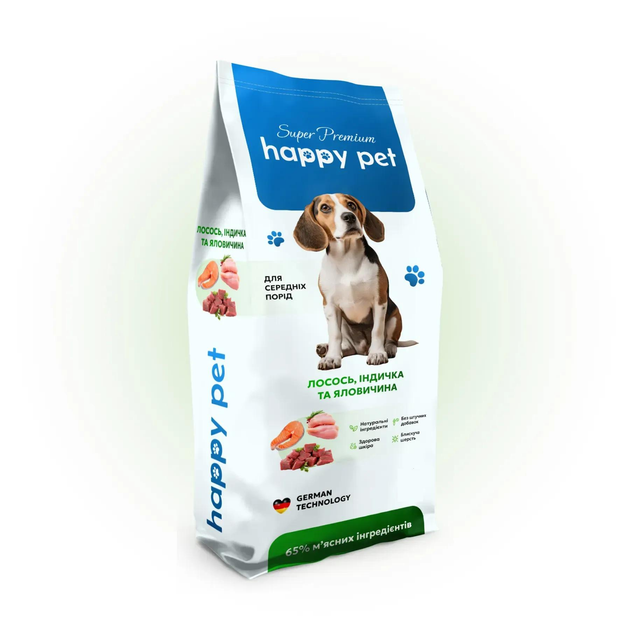 Сухий корм Happy Pet для дорослих собак середніх порід на основі 3-х видів м'яса 1 кг