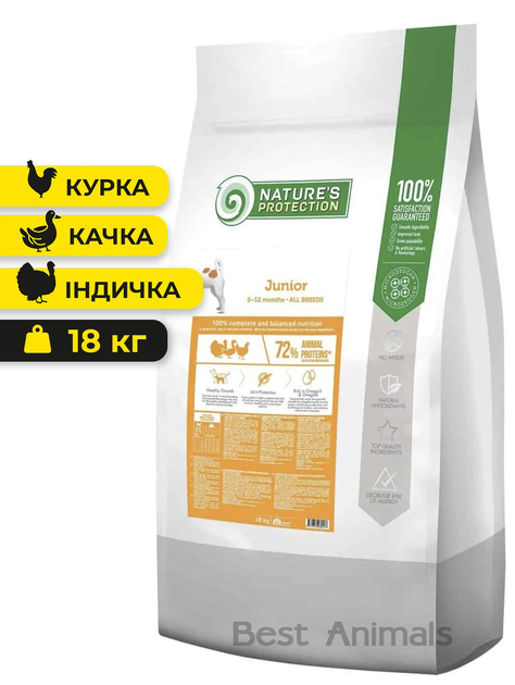 Сухий корм з куркою індичкою та качкою Nature's Protection Junior All breeds Натюр Протекшн для цуценят всіх порід 18 кг