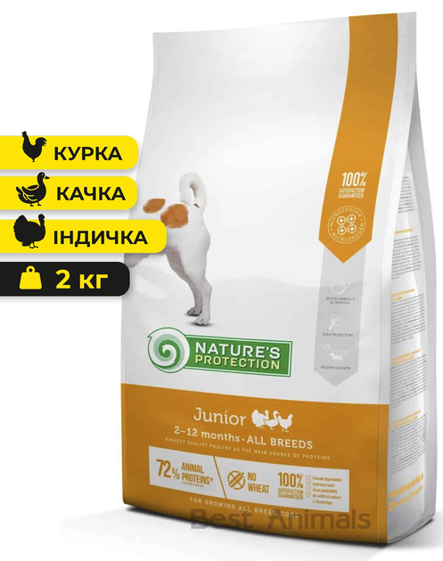 Сухий корм з куркою індичкою та качкою Nature's Protection Junior All breeds Натюр Протекшн для цуценят всіх порід 2 кг