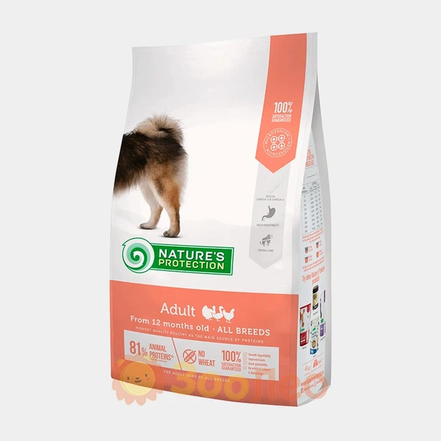Сухий корм Nature's Protection Adult All Breeds для дорослих собак усіх порід, з птицею, 4 кг