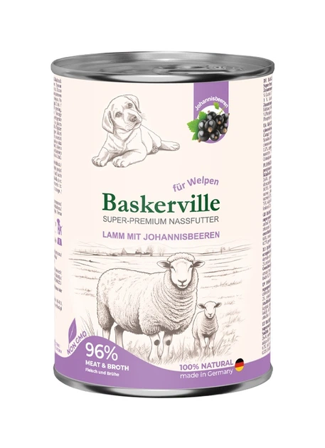 Упаковка вологого корму Baskerville для цуценят, ягня та смородина, 400г (6шт)