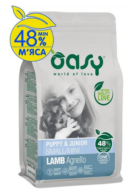 Озі сухий корм для цуценят маленьких порід OASY DOG OAP PUPPY Small/Mini ягня, 2,5 кг