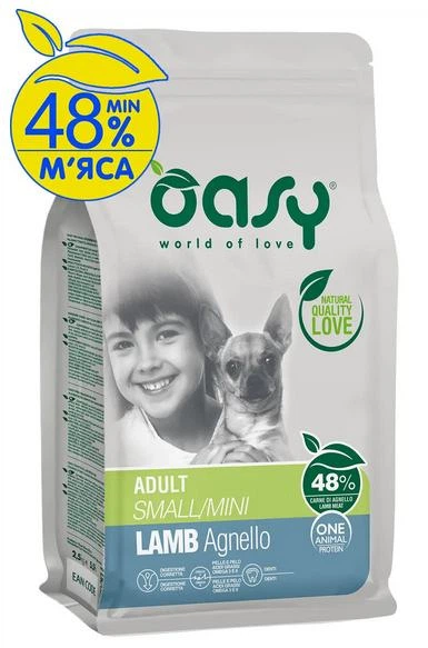 Озі сухий корм для собак маленьких порід OASY DOG OAP ADULT Small/Mini ягня, 2,5 кг