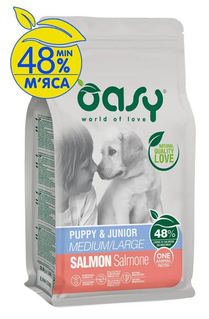 Озі сухий корм для цуценят середніх та великих порід OASY DOG OAP PUPPY Medium/Large лосось, 2,5 кг