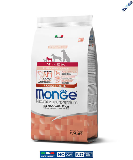 Monge Dog Mini Puppy & Junior лосось з рисом сухий корм Монж для цуценят дрібних порід, 2.5кг