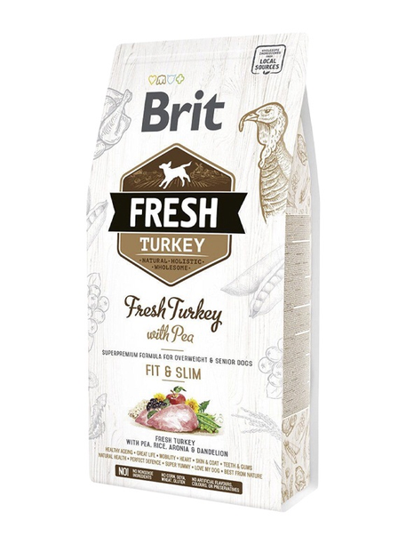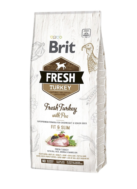 Сухий корм для собак Brit Fresh Light Fit and Slim для дорослих, літніх собак з індичкою та горошком, 12 кг