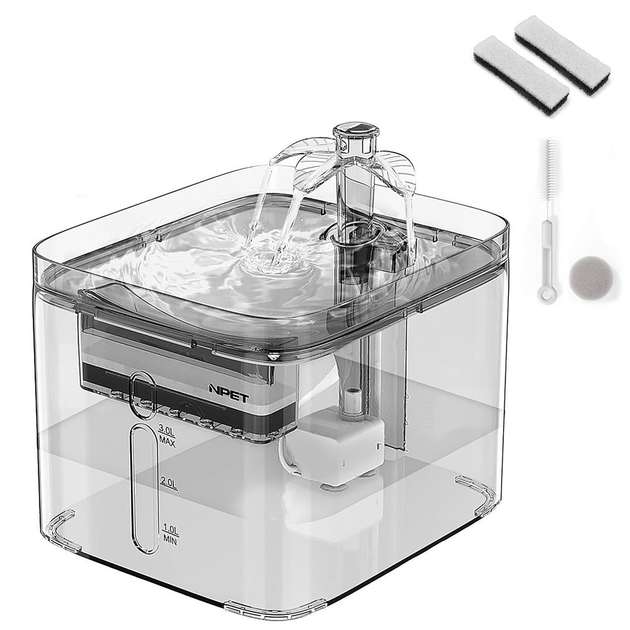Питний фонтан поїлка для котів і собак NPET WF020TP 3L з фільтром Прозорий (01002)