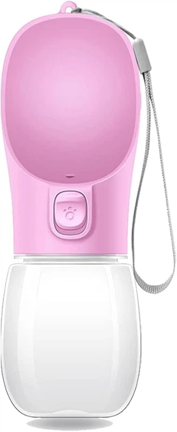 Дорожня пляшка для тварин, портативна поїлка для собак і котів 300мл Рожева
