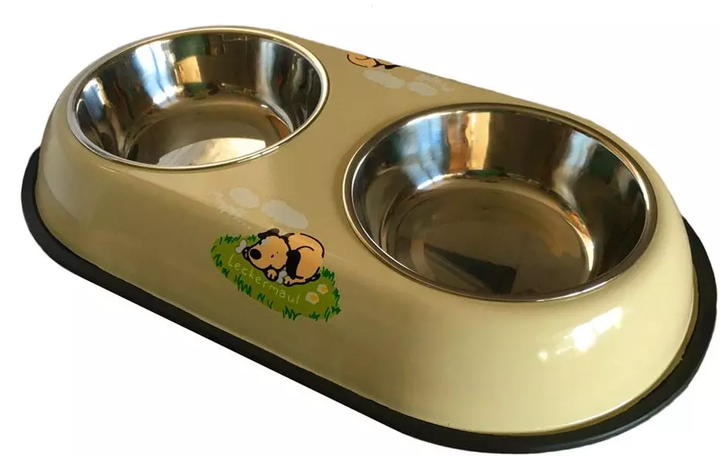 Миска подвійна з нержавіючої сталі в кольоровій підставці, мала