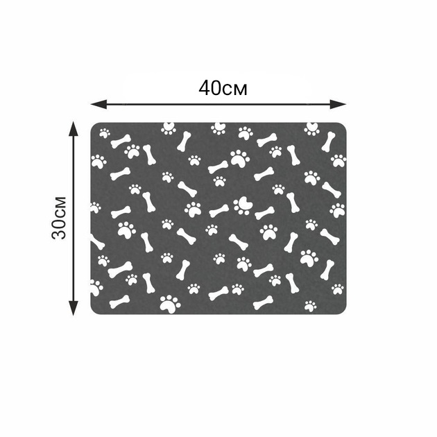 Антиковзний Поглинаючий Швидковисихаючий Килимок під миски для домашніх тварин Кісточки 30х40 см Сірий
