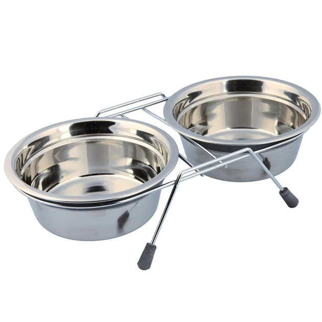 Миска подвійна а підставці для тварин з нержавіючої сталі мала 201314 см