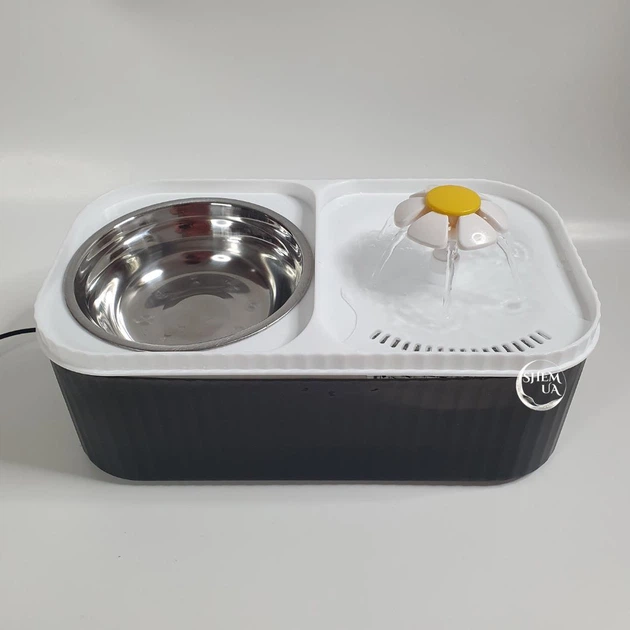 Автоматична поїлка - фонтан для тварин 2в1 з мискою для корму, фільтрація води, живлення від USB LY-429-White