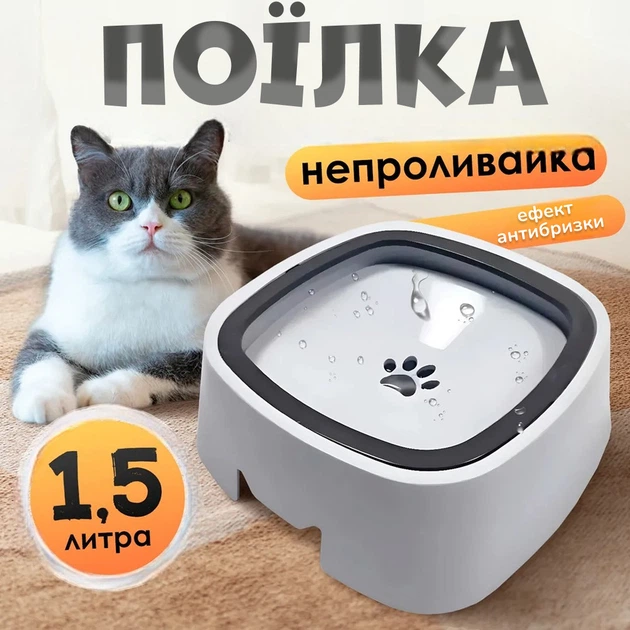 Миска поїлка непроливайка для котів собак миска для води сухы вуса для котів 1.5 л