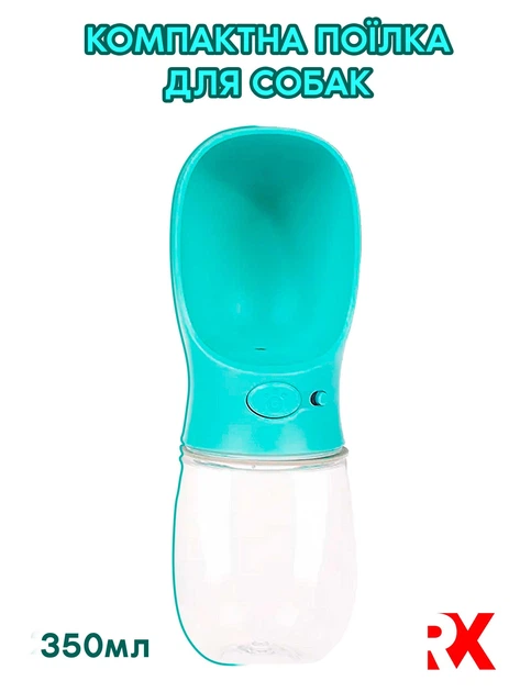 Прогулянкова портативна поїлка для собак Бірюзова (350 мл, ABS-пластик)