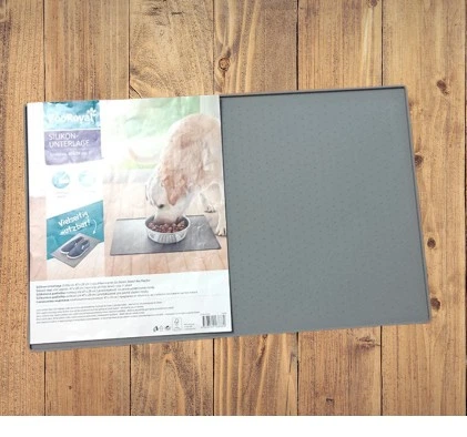 Коврик антиковзний Dexas під миски середній 33x48см (світло сірий)