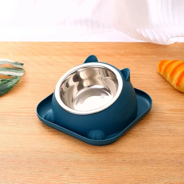 Миска для тварин котів та собак з нахилом анти перекидання, 18 см діаметр площини, Blue Semi Синій (2000003136513)