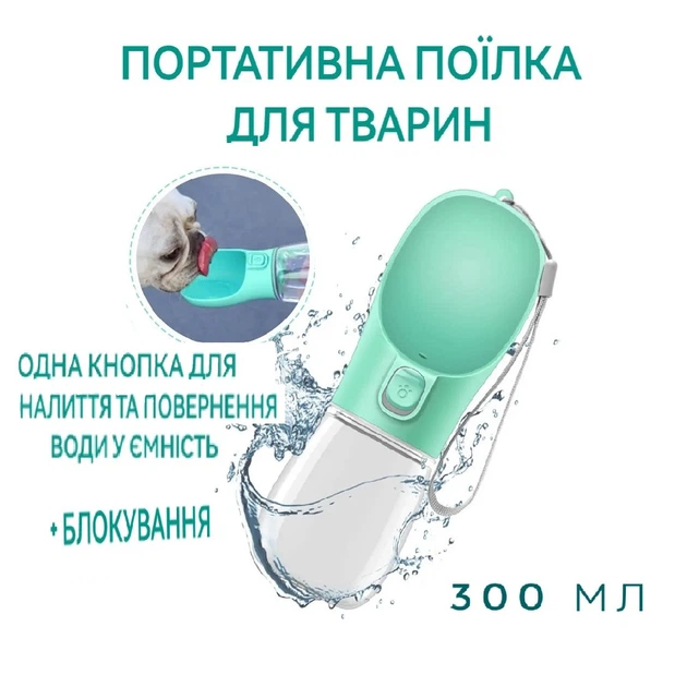 Портативна дорожня пляшка-поїлка для собак і кішок 300 мл бірюзова