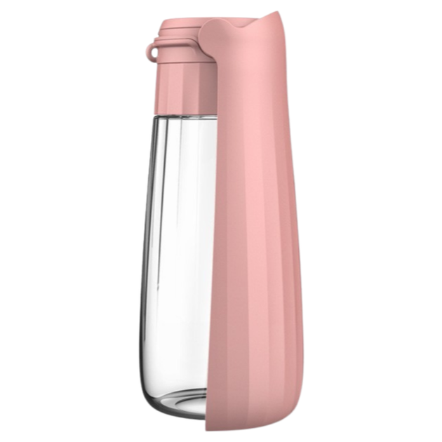 Дорожня напувалка для собак з карабіном 500 мл пляшка поїлка непроливайка для прогулянок з тваринами, Рожева