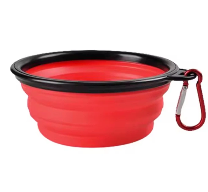 Переносна дорожня миска для собак та котів 350мл. Складна миска з карабіном для собак та котів ЧЕРВОНА