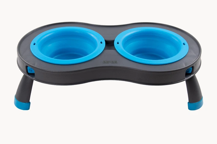 Миска подвійна Dexas Дабл Фідер на складній підставці мала 240 мл блакитна (PW1004322194)