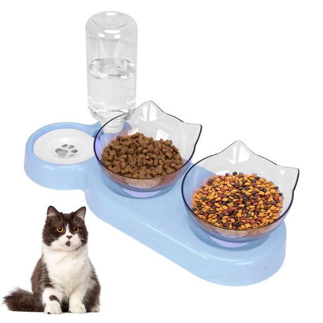 Подвійна миска з автопоїлкою 2в1 для котів і собак, для корму і води, універсальна кормушка 550 мл блакитна