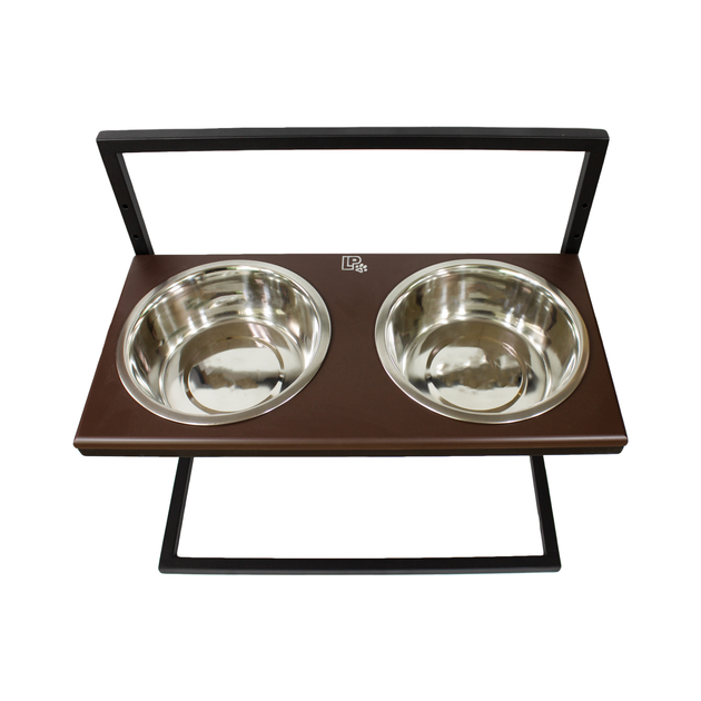 Миски на металевій підставці з дерев'яною поверхнею Lucky Pet, чорний/коричневий ламінат, (193451), 2x2.6л