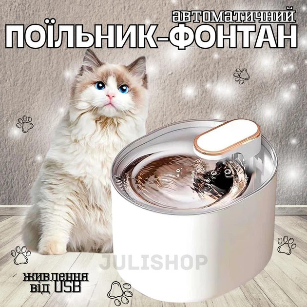 Автоматичний поїльник-фонтан для котів і собак Pet Fountain — поїлка з циркуляцією води, живлення від USB