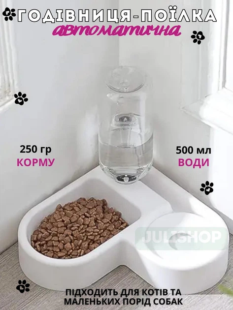 Автопоїлка і годівниця LY-622 для кішок дрібних собак 2в1 подвійна кутова на підставці