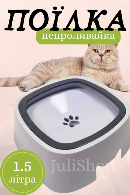 Поїлка - непроливайка для тварин MAGIC BOWL Миска для води з плаваючим диском проти бризок для собак та котів, 1.5 л