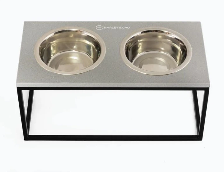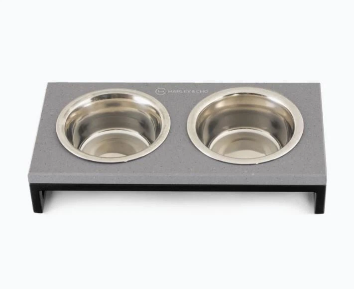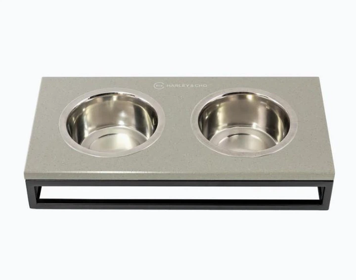 Миски на підставці Harley and Cho Lunch Bar Grey Stone + Black XS 28x14x5cm / Миски по 0,2л Сірий камінь чорний метал (HC-00