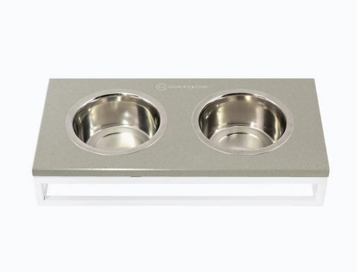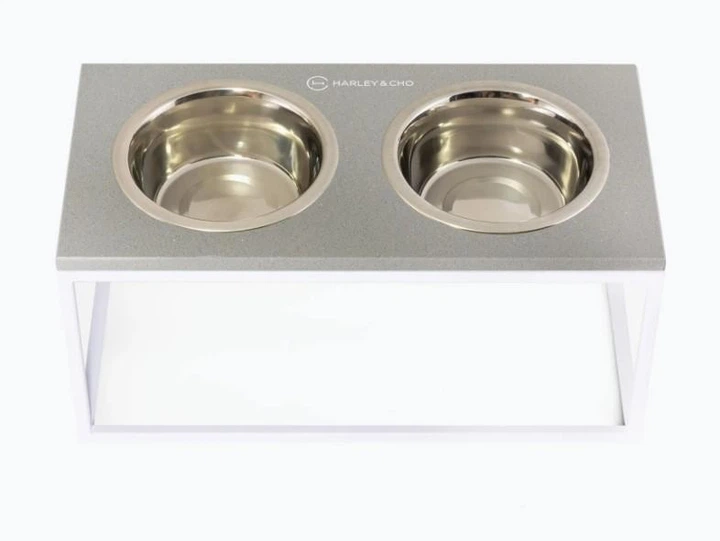 Миски на підставці Harley and Cho Lunch Bar Grey Stone + White M 42x21x10cm / Миски по 0,75л Сірий камінь білий метал