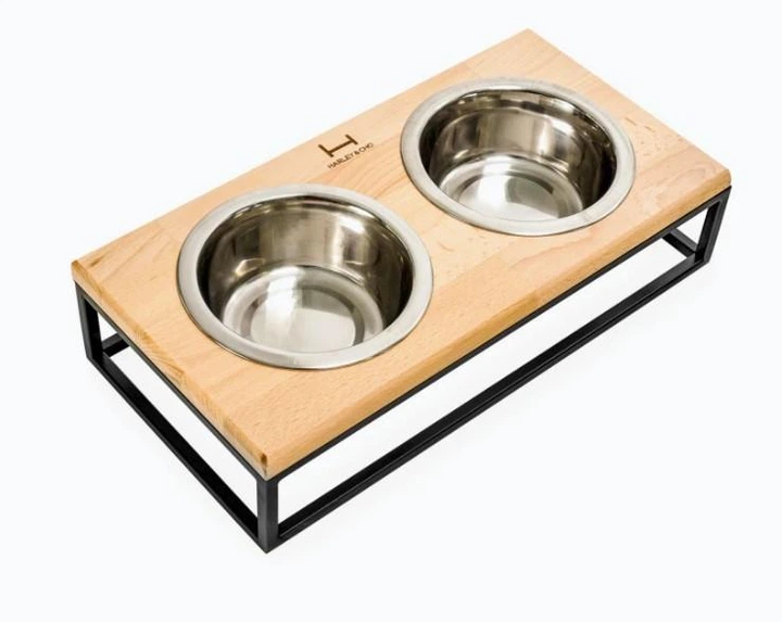 Миски на підставці Harley and Cho Lunch Bar Natural wood + Black M 42x21x10cm / Миски по 0,75л Натуральний + чорний (HC-0033