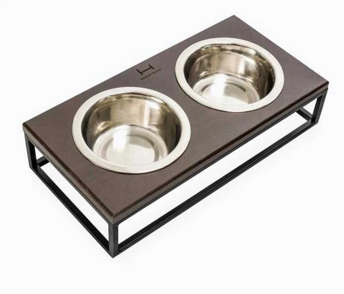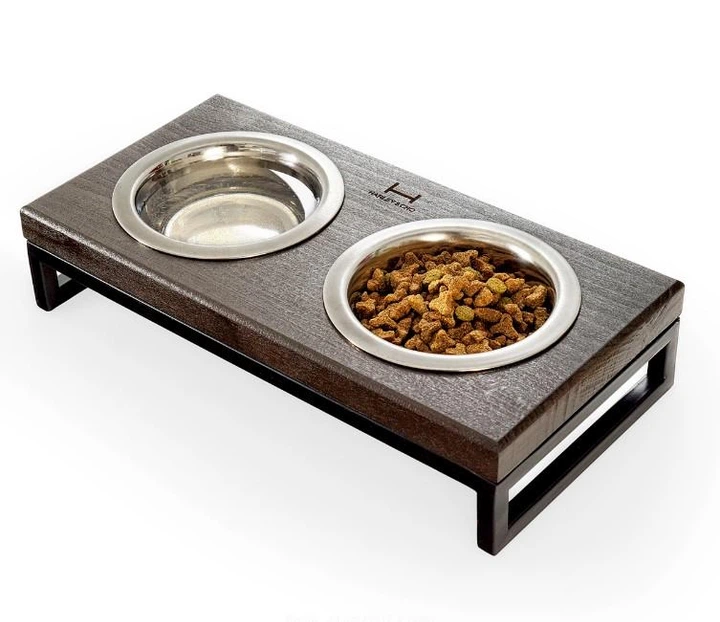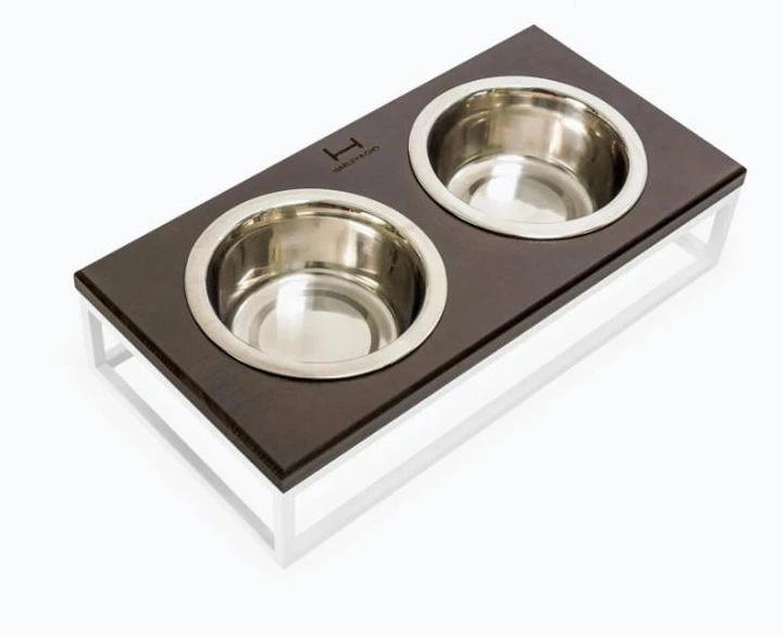 Миски на підставці Harley and Cho Lunch Bar Brown wood + Black L 42x21x20cm / Миски по 0,75л Коричневий + чорний
