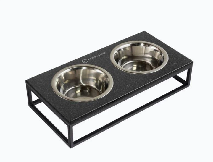 Миски на підставці Harley and Cho Lunch Bar Black Stone + White L 42x21x20cm / Миски по 0,75л Чорний камінь білий метал (HC-